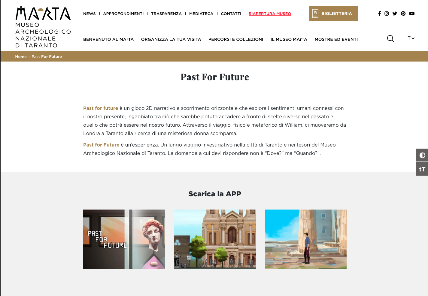 Attività di organizzazione, comunicazione e promozione dell’evento di lancio online della piattaforma digitale del Museo Archeologico Nazionale di Taranto in 8 lingue